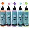 Assortiment de peinture visqueuse en flacons avec embouts fins. Utilisés pour des détails en relief sur le carton, la pierre, le métal ou le tissu. Lavable à 40° C après avoir séché pendant une journée.