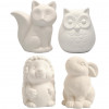 Tirelires, hibou, renard, hérisson, lièvre, h: 9-10 , blanc, 4pièces [HOB-50569]