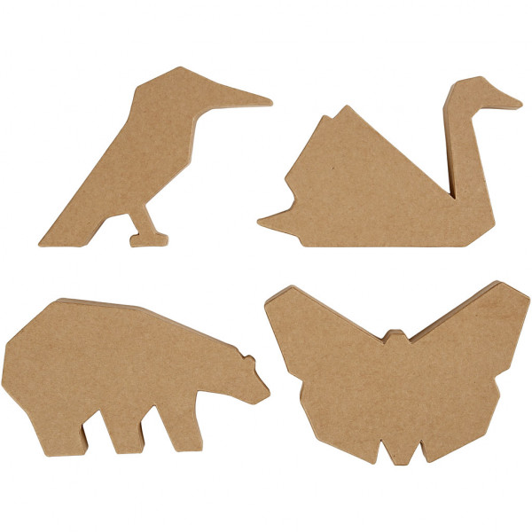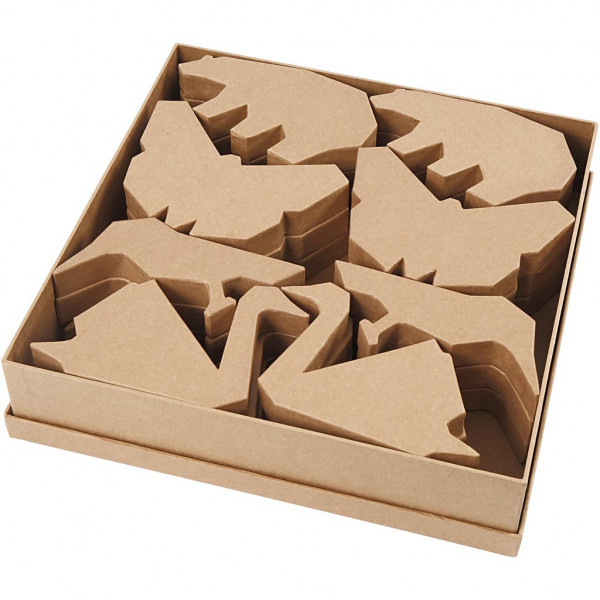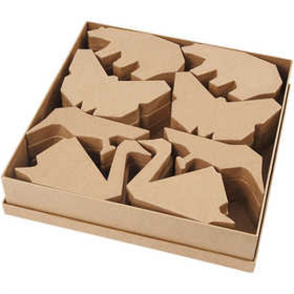 Animaux en Papier Mâché, h: 10,5-12,5 cm, ép. 25 mm, 24 pièces [HOB-99357]