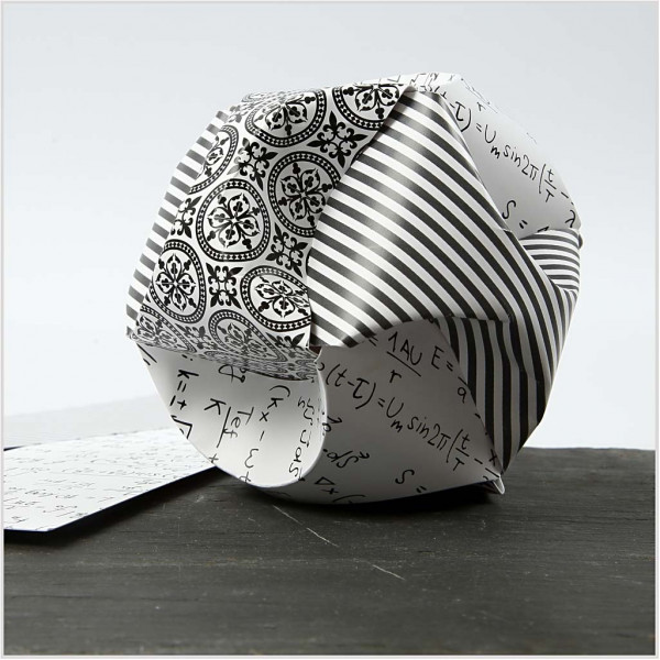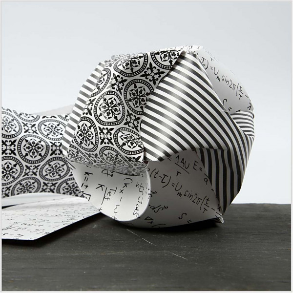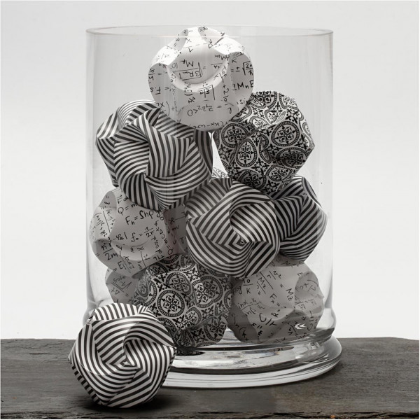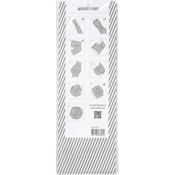 Bandes de papier en Vivi Gade Design pour créer 9 boules. Le d. donne la dimension de la boule.