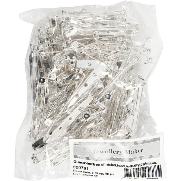 Monture de broche, L: 35 mm, argenté, 100pièces [HOB-600761]