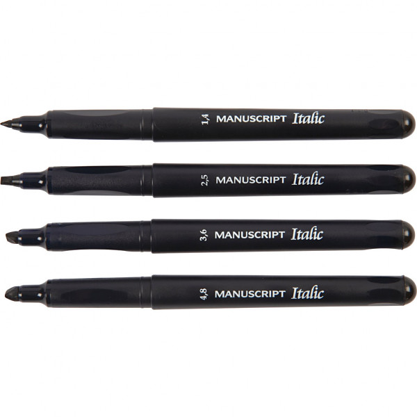Marqueurs pour calligraphie , largeur de trait: 1,4+2,5+3,6+4,8 mm, noir, 4assortis [HOB-14197]
