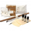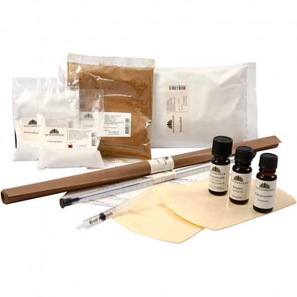 Le set comprend: dextrose, colorants et arômes, tapis, recette, thermomètre, 2 gratoirs en plastique et une seringue de dosage.