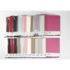 Assortment of solid coloured paper with fine texture on one side.