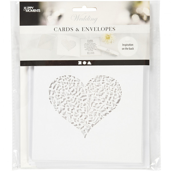 Exclusive, double card of heavy cardboard (240 g) with fine heart cutout. Envelope (110 g) included. Both cards and envelopes have a beautiful mother of pearl surface.