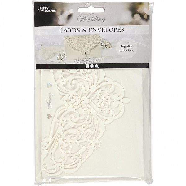 Carte et enveloppe, blanc cassé, dimension carte 12x17,7 cm, dimension enveloppes 18x12,5 cm, 5pièces, 230 gr [HOB-23041]