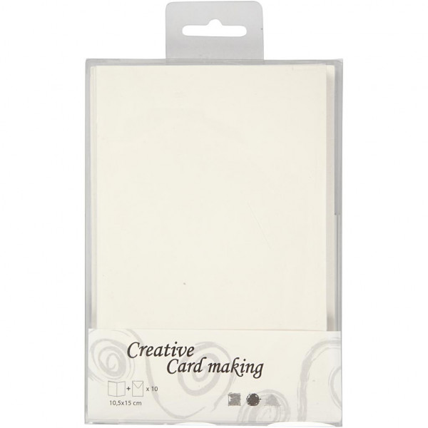 Cartes et enveloppes, dimension carte 10,5x15 cm, dimension enveloppes 11,5x16,5 cm, blanc cassé, 10sets [HOB-23708]