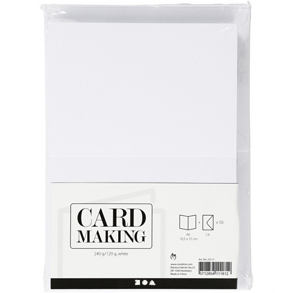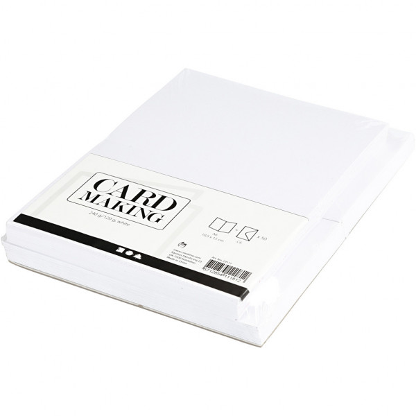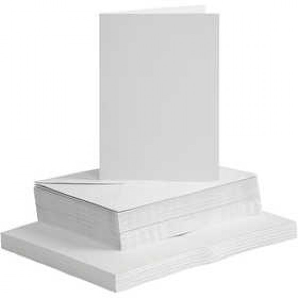 Cartes & Enveloppes, dimension carte 10,5x15 cm, dimension enveloppes 11,5x16,5 cm, blanc, 50sets [HOB-23111]