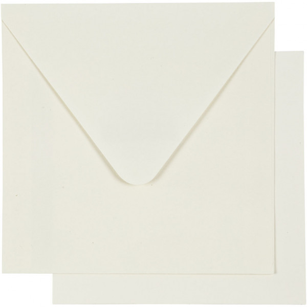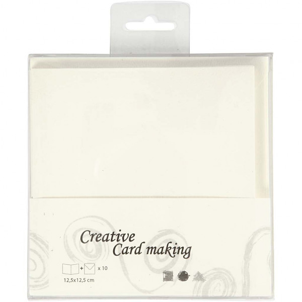 Cartes et enveloppes, dimension carte 12,5x12,5 cm, dimension enveloppes 13,5x13,5 cm, blanc cassé, 10sets [HOB-23728]