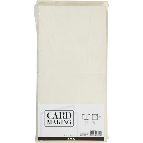 Cartes & Enveloppes, dimension carte 15x15 cm, dimension enveloppes 16x16 cm, blanc cassé, 50sets [HOB-23119]