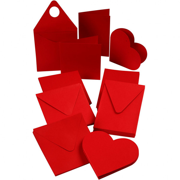 Cartes de Noël, dimension carte 7,5-15 cm, dimension enveloppes 8,5-16 cm, rouge, 50sets [HOB-21082]