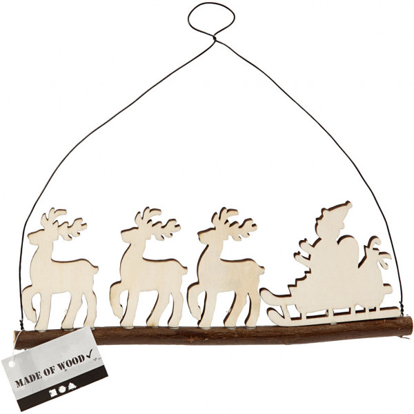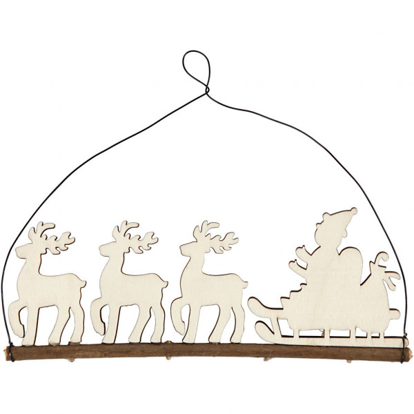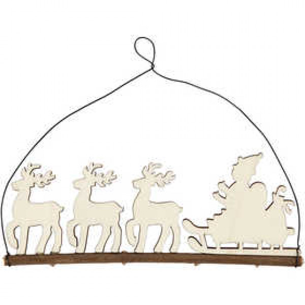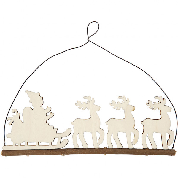 Décoration de Noël, traîneau avec rennes, h: 8 cm, l: 22 cm, triplex, 1pièce, profondeur 0,5 cm [HOB-55322]