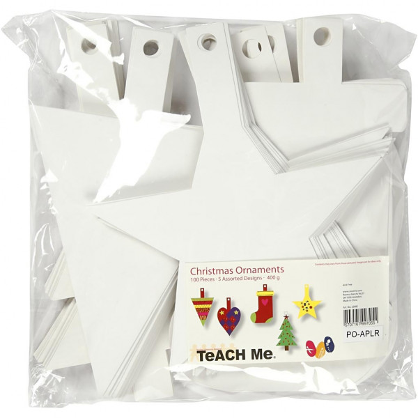 Ornements de Noël, h: 23,5-26,5 cm, l: 15,5-20,5 cm, blanc, 100pièces, 400 gr [HOB-23881]