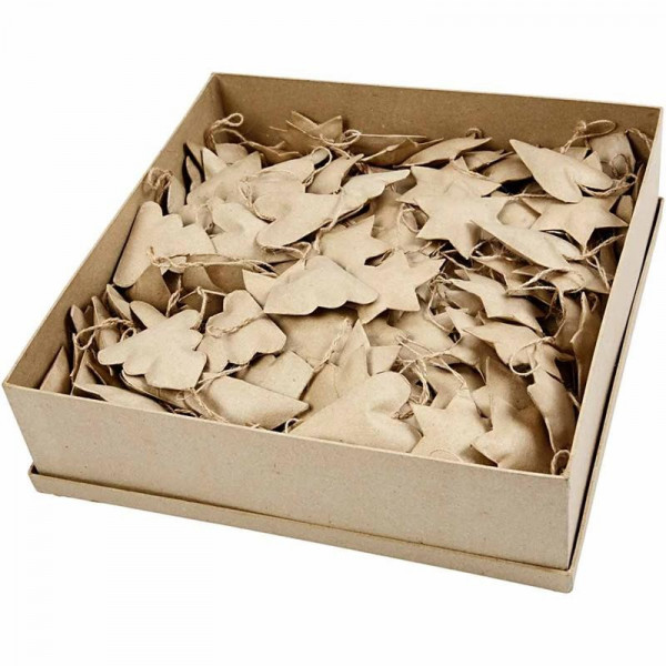 Décorations de Noël en papier mâché avec ficelle de suspension en jute.
