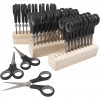 Assortiment de 36 ciseaux enfants de qualité à poignée souple et de 3 porte-ciseaux en bois.