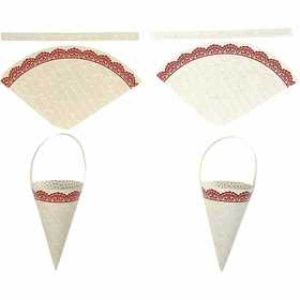 Tout le matériel nécessaire pour réaliser 10 cônes avec poignées, imprimés avec des modèles de la série Vivi Gade Design.