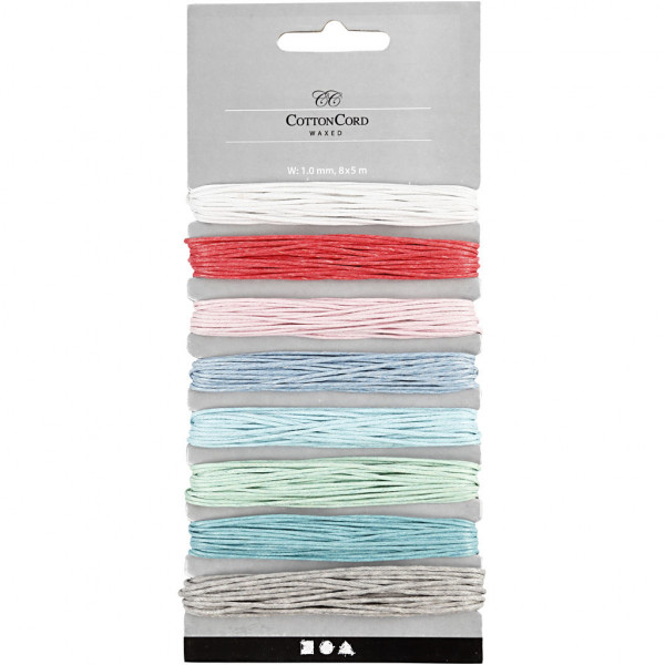 Ficelle coton, épaisseur 1 mm, Couleurs assorties, 8x5m [HOB-519670]