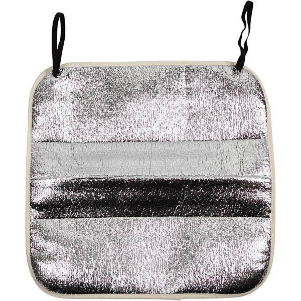 Couverture de siège pliable (220 g/m2) avec la possibilité de décoration, par exemble avec marqueurs pour textiles ou peinture tissu d'un côté, et une feuille isolante de l'autre côté.