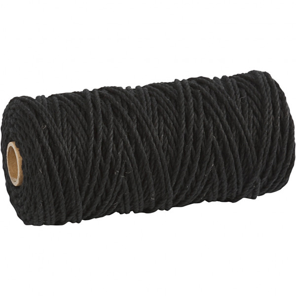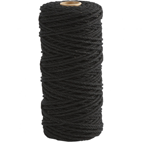 Ficelle de coton, L: 100 m, épaisseur 2 mm, noir, Qualité épaisse 12/36, 225gr [HOB-41550]