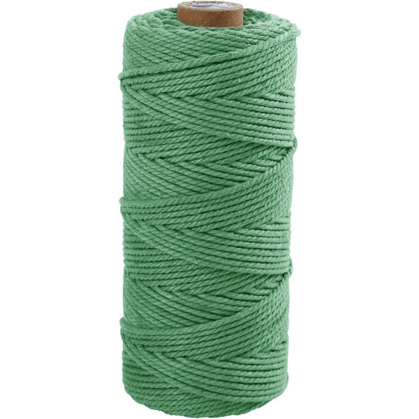 Ficelle de coton, L: 100 m, épaisseur 2 mm, vert clair, Qualité épaisse 12/36, 225gr [HOB-41544]