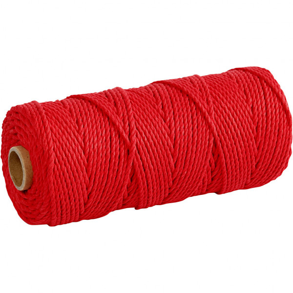 Ficelle de coton, L: 100 m, épaisseur 2 mm, rouge, Qualité épaisse 12/36, 225gr [HOB-41536]