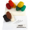 Kit avec laine cardée, bloc mousse pour feutrage et aiguilles à feutrer des images. Un activité stimulant l'intelligence pour enfants.