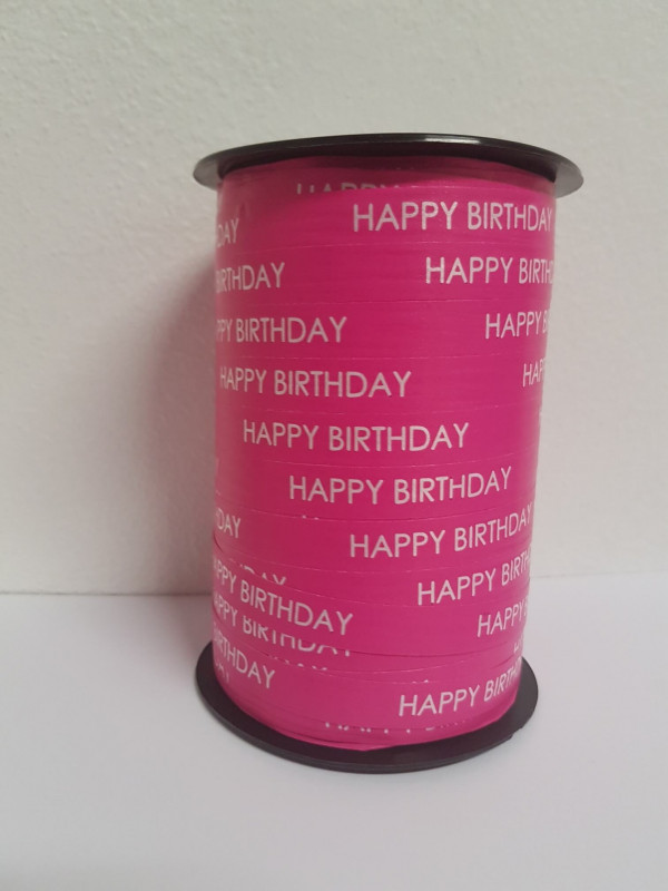 Ribbon Happy Birthday Pink 10mm x 250 meter (1 pcs) > Price is per roll.