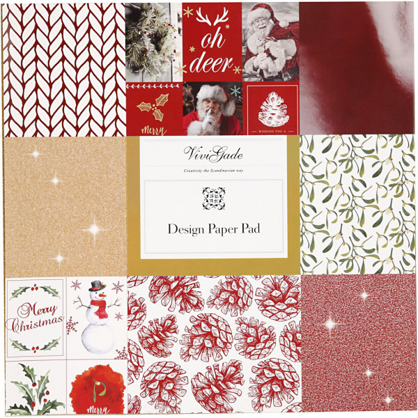 Bloc contenant 36 feuilles carrées de 18 designs différents de chez Vivi Gade. Composé de papier dont une face est imprimée de motifs avec ou sans détails argentés métalliques. De plus, le papier est imprimé sur toute sa surface.