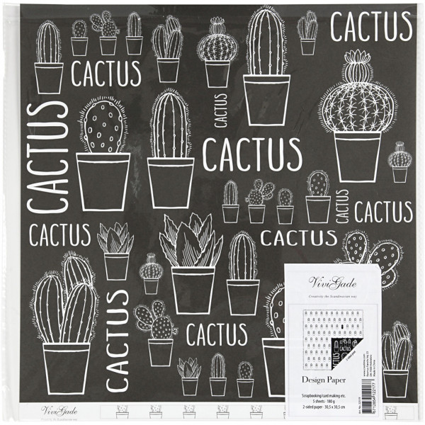 Papier Design, feuille 30,5x30,5 cm, 180 gr, , cactus, 5flles [HOB-22519]