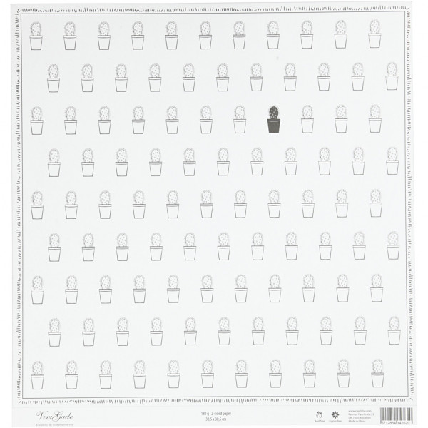 Papier Design, feuille 30,5x30,5 cm,  180 gr, , cactus, 5flles [HOB-22519]