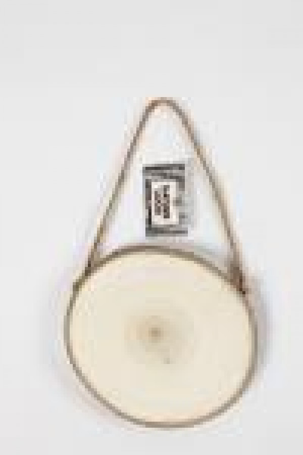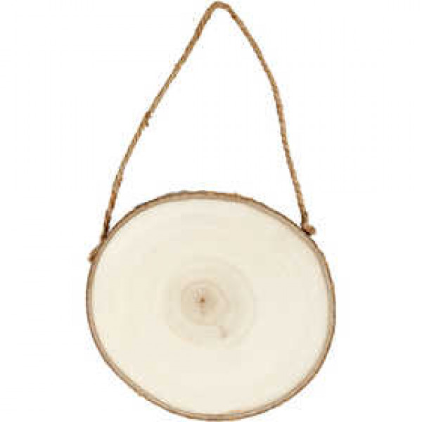 Wood slab with bark edge. Suspension cord mounted.