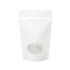 Les Doypack avec une fenêtre ovales sont de bons moyens pour que votre produit se démarque dans les rayons. Le ZBGO3P est de 13 x 7.9 x 20.6 cm en dimensions externes, et est de couleur blanc nacré pour lui donner un look rafraichissant. Vous pourrez emballer des noix, sels de bains, du café, du riz et bien plus encore. Le design auto-porté de notre sac permet d’avoir un espace utile de 12.1 x 6.4 x 17.1 cm et de 113 g (basé des graines de café entières). La matière est d’une épaisseur de 120 microns et est stratifié pour une meilleure protection afin de garder vos produits frais. La fermeture Zip est réutilisable et permet à vos clients une facilité d’utilisation. Un cran permet d’ouvrir le sac lorsqu’il est thermoscellé.