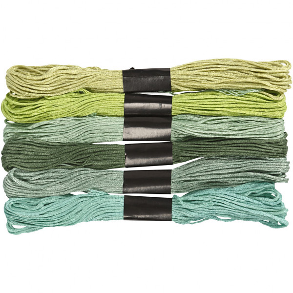 Fil à broder - Assortiment, épaisseur 1 mm, harmonie de verts, 6boules [HOB-412740]