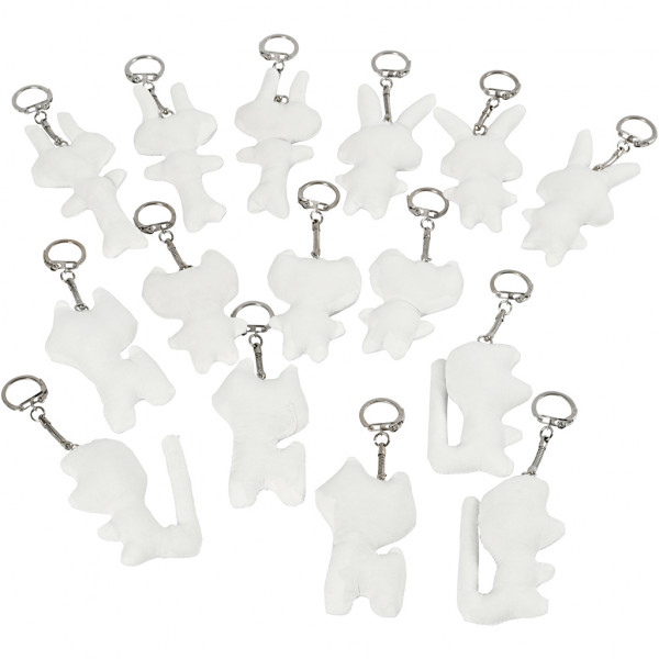 Fabric Figures with key rings, size 6-10 cm, 15 pcs, white [HOB-49514]