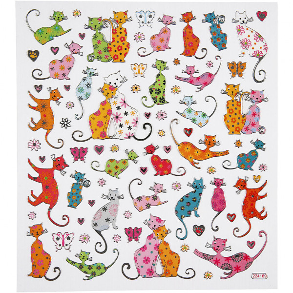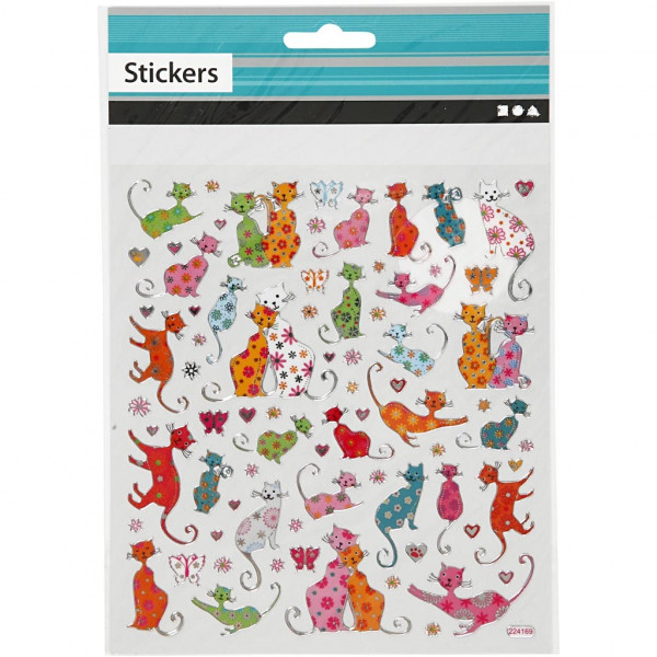 Autocollants fantaisie, feuille 15x16,5 cm, Chats, 1flles [HOB-288110]