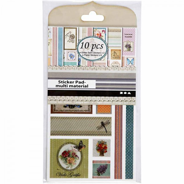 Paquet de 2 feuilles assorties avec autocollants en satin avec paillettes et 8 feuilles assorties avec autocollants en papier.