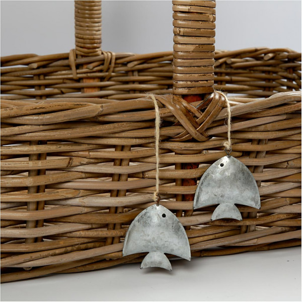 Ornement galvanisé avec corde de jute pour accrocher.