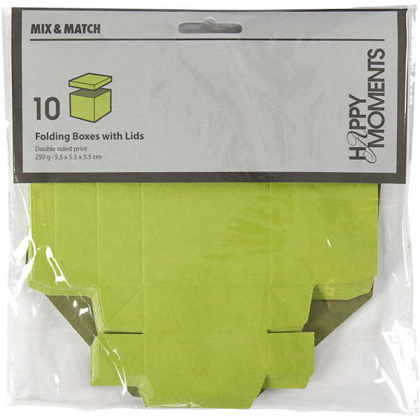 Boîte pliante, dim. 5,5x5,5 cm,  250 gr, vert foncé/citron vert, 10pièces [HOB-233007]