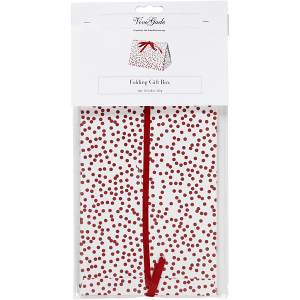 Boîte d'emballage à plier, Points, dim. 15x7x8 cm, 250 gr, rouge, 3pièces [HOB-25361]