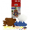 Ce kit contient tout le matériel nécessaire à la réalisation d'une figurine amusante en feutre synthétique. Le feutre prédécoupé a des trous sur le pourtour pour coudre, et les décorations sont autocollantes.