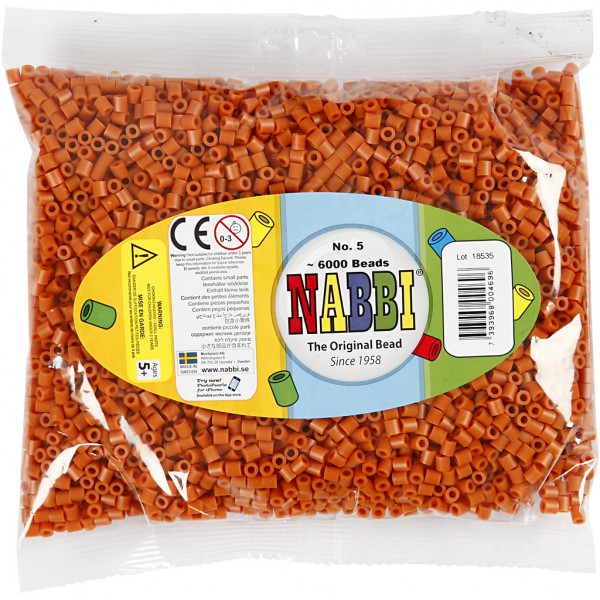 Perles à repasser, dim. 5x5 mm, la taille du trou 2,5 mm, rouge brunâtre (5), médium, 6000pièces [HOB-751051]