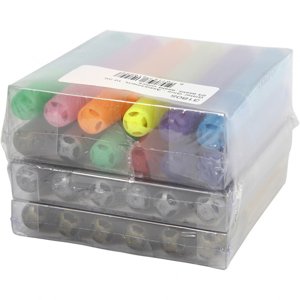 Colle pailletée - Assortiment, 10 ml, Couleurs assorties, 24pièces [HOB-31805]