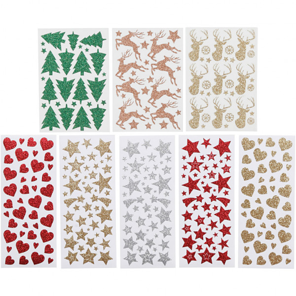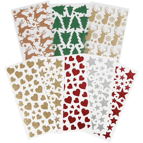 Assortiment de motifs autocollants en film spécial pailletté.
