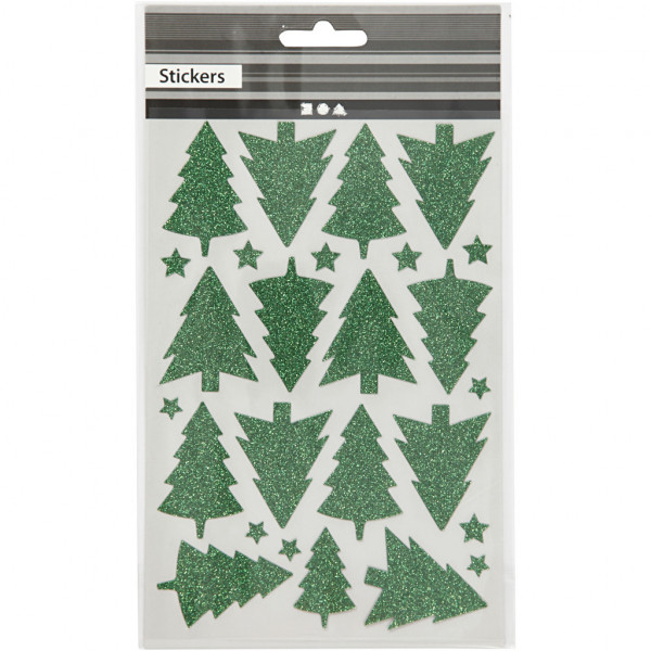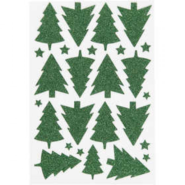 Autocollants scintillants, feuille 12x18,5 cm, vert, sapin de Noël, 1flles [HOB-27002]