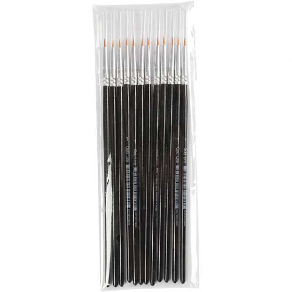 Gold Line pinceaux acryliques, 1 , l: 2 mm, rond, 12pièces [HOB-10701]