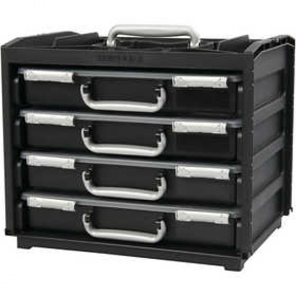Unité portable Raaco avec 4 valisettes de rangement en PP avec fermeture à glissière et poignée - livré avec godets amovibles.