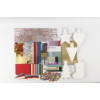 Un paquet avec du matériel créatif pour réaliser des décorations, avec des mod`les pour des décorations de Noël brillantes.