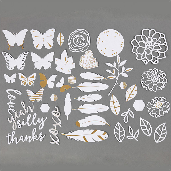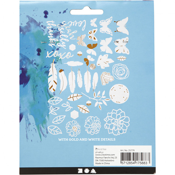 Étiquettes avec motifs dorés pour aquarelles, dim. 1,5-10 cm, 44assortis [HOB-25779]