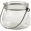Lanterne boule en verre transparent avec anse en métal.
