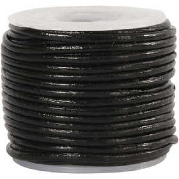 Cordon de cuir, épaisseur 1 mm, noir, 10m [HOB-51548]